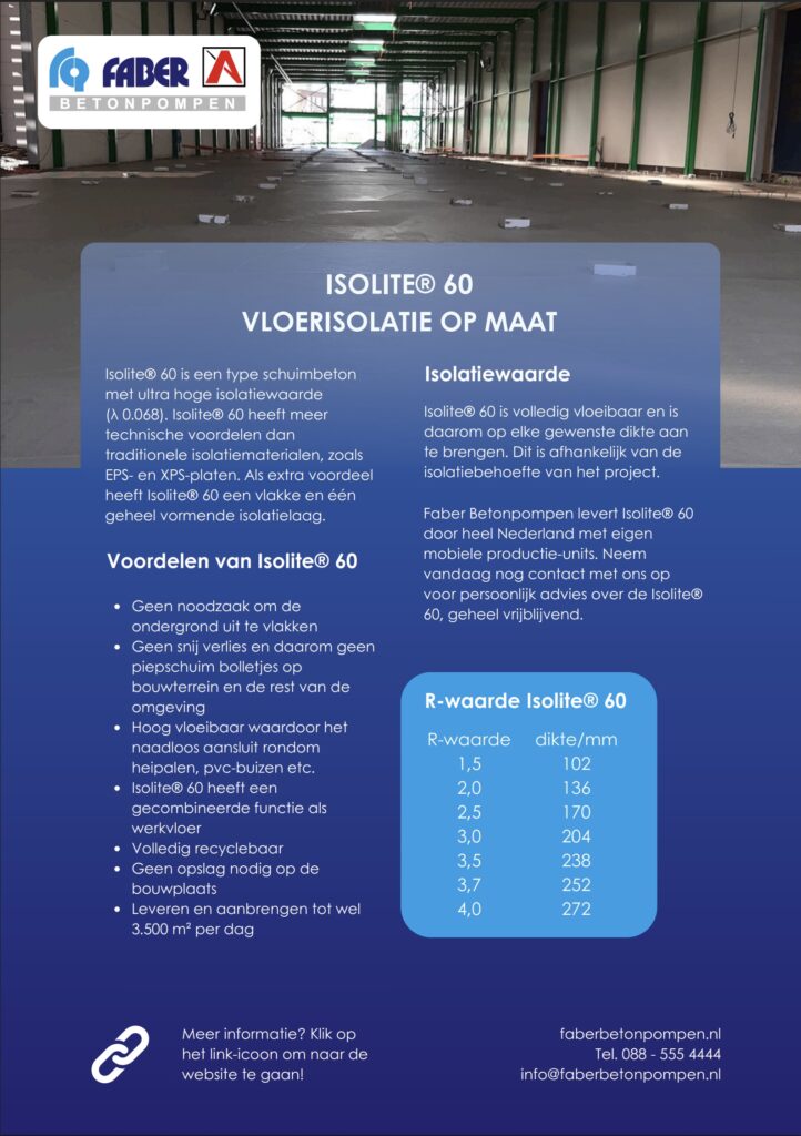 De trend is dat de overheid wil verduurzamen en steeds hogere eisen stelt aan de isolatiewaarde van vloeren. Faber denkt mee met bouwbedrijven door de lancering van het hoog isolerende Isolite® schuimbeton.